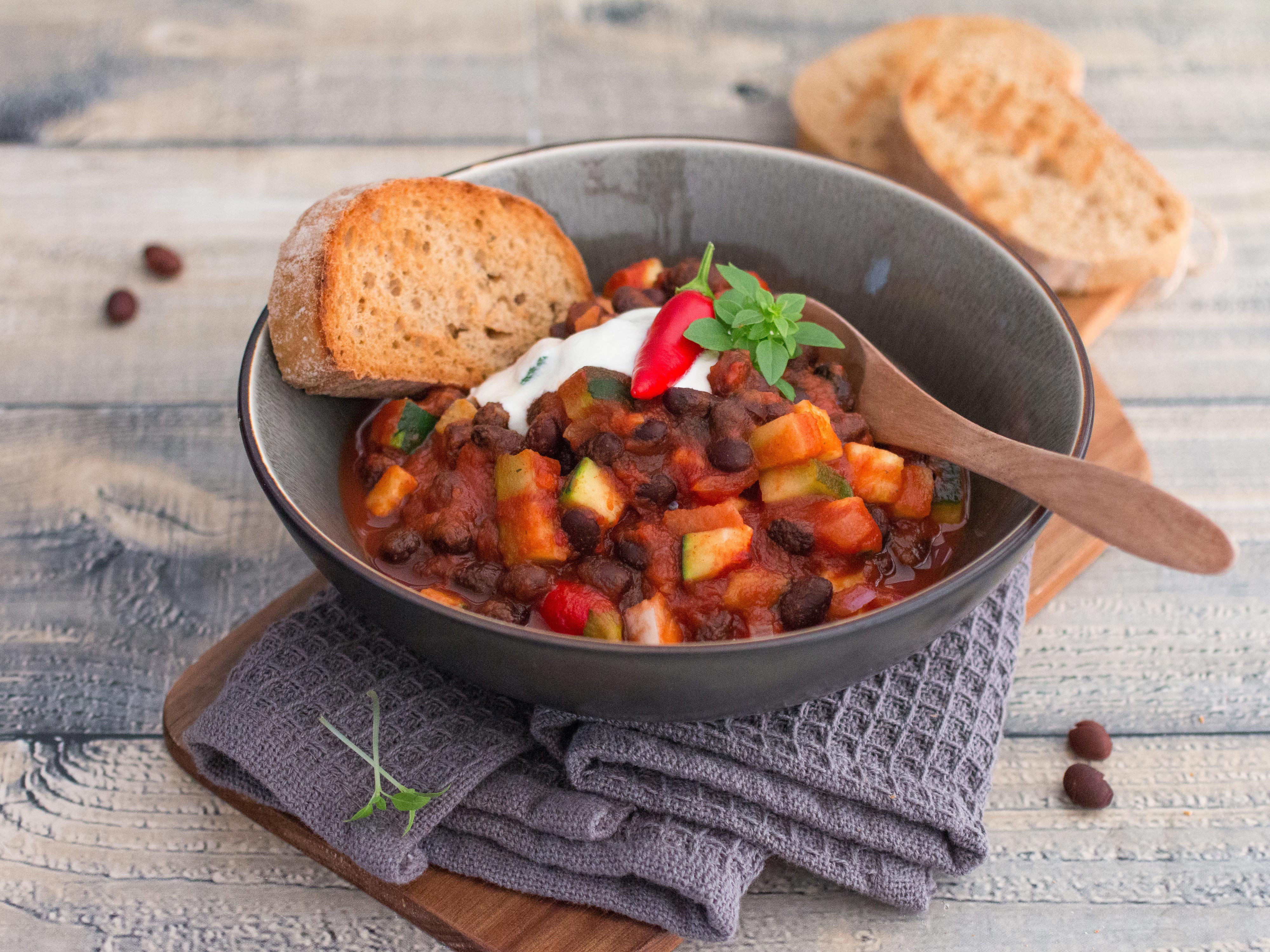 Rauchiger Tomateneintopf mit schwarzen Bohnen