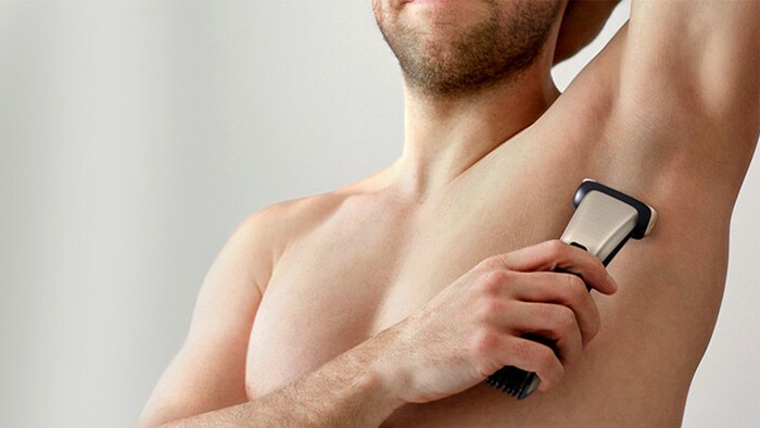 Mann trimmt seine Achselhöhle