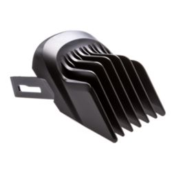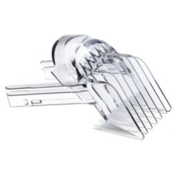 Kürzen Sie Ihr Haar auf die gewünschte Länge mit zwei verstellbaren Kammaufsätzen, die in 1-mm-Schritten zwischen 3 mm und 28 mm schneiden, mit einem 2-mm-Trimmaufsatz, oder nehmen Sie den Kammaufsatz für eine 0,5-mm-Trimmung ab.